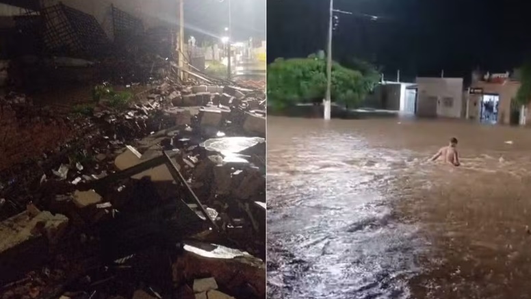 A intensidade da chuva causou prejuízos como o desabamento de um prédio antigo. Segundo a defesa civil, o imóvel estava desocupado e ninguém se feriu.