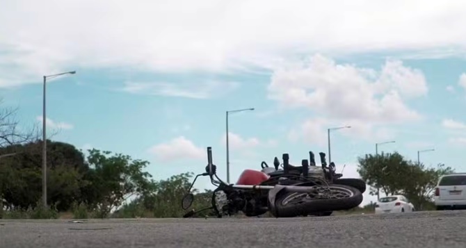 Nesse momento, os carros que estavam atrás precisaram frear rapidamente. O motociclista, no entanto, não conseguiu parar e atingiu uma caminhonete, caindo na pista. Um caminhão que também não conseguiu frear atropelou o motociclista e também passou por cima da moto.